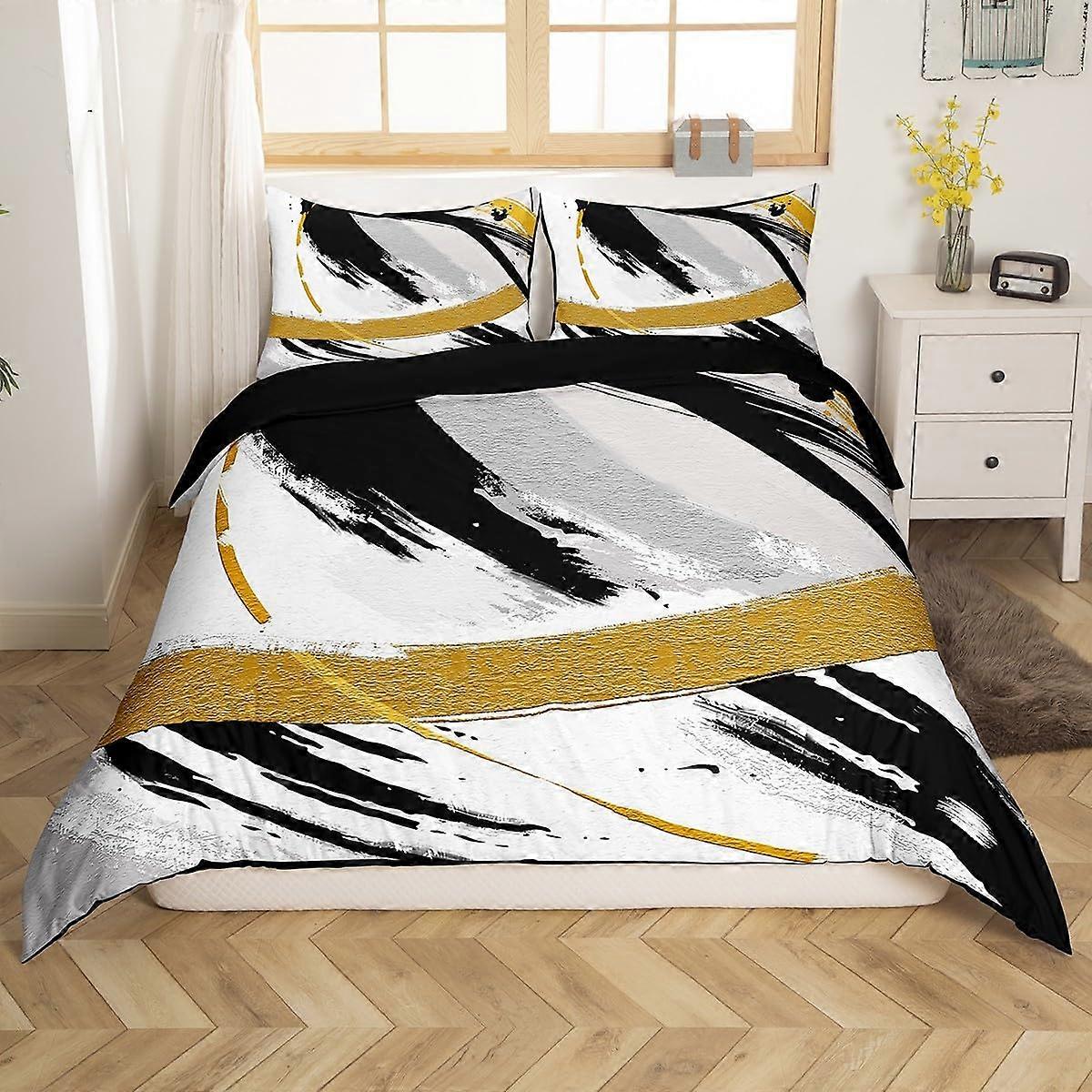 Duvet Cover Queen Size Black Grey Gold Brush Strokes Oil Painting, Ombre Graffiti Bedding Set, Contemporary No Comforter