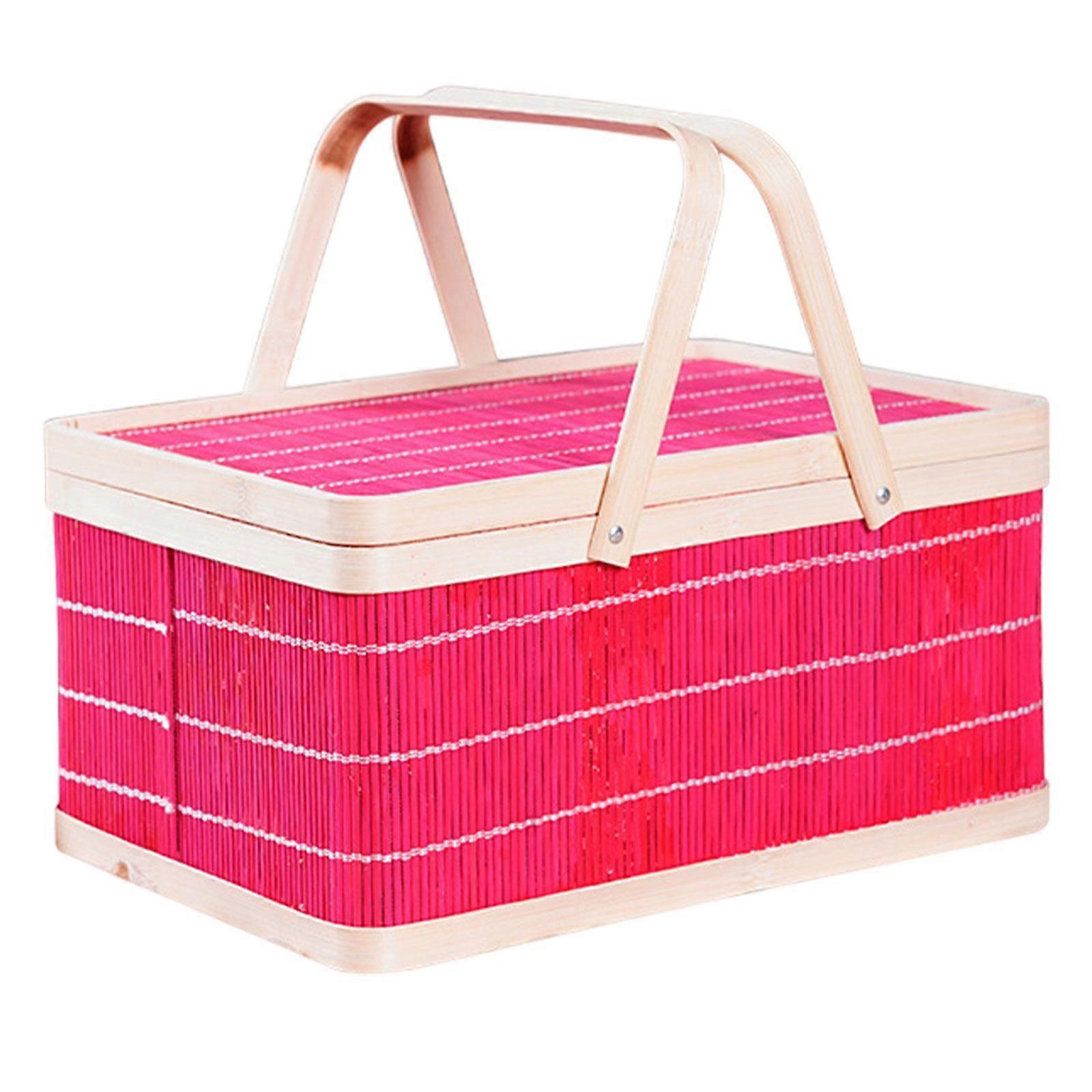 Bamboo Woven Basket with Double Handles Picnic Basket for Cake Snacks Fruit