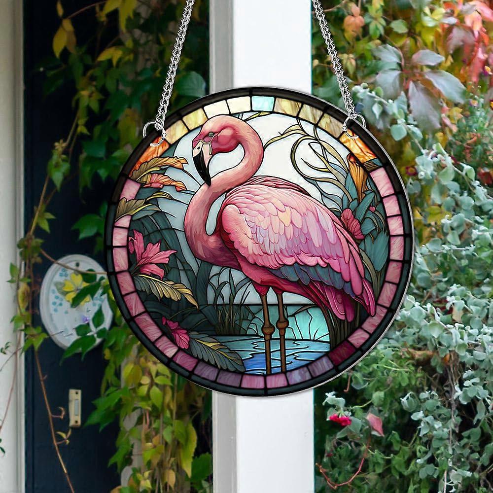 Flamingo Round Stained Acrylic Window Hanging Panels For Indoor Outdoor Use Window Hanger Wall Art Decor Gift