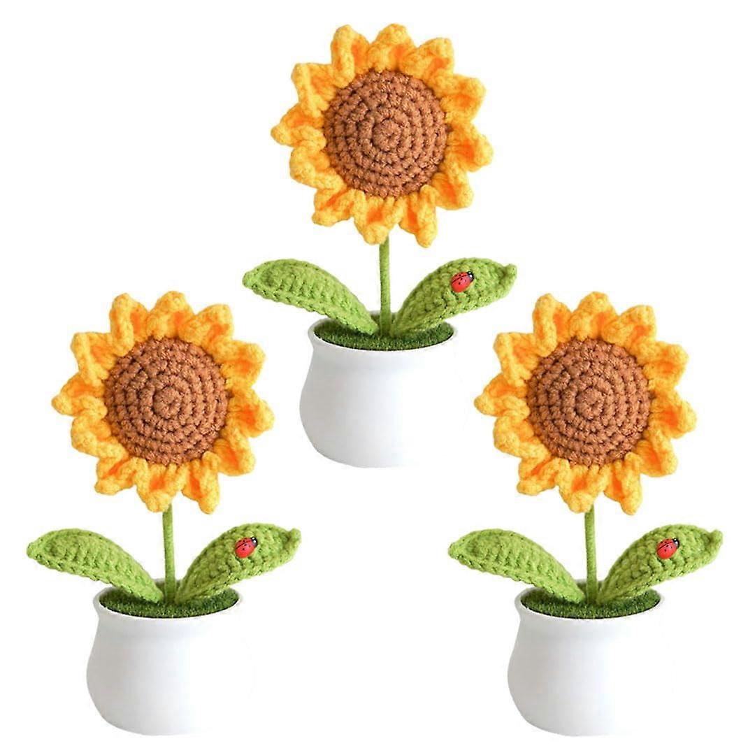 Handmade Crochet Potted Sunflower Bouquet 3-Piece Set Knitted Artificial Forever Flowers With Pot Home Decor