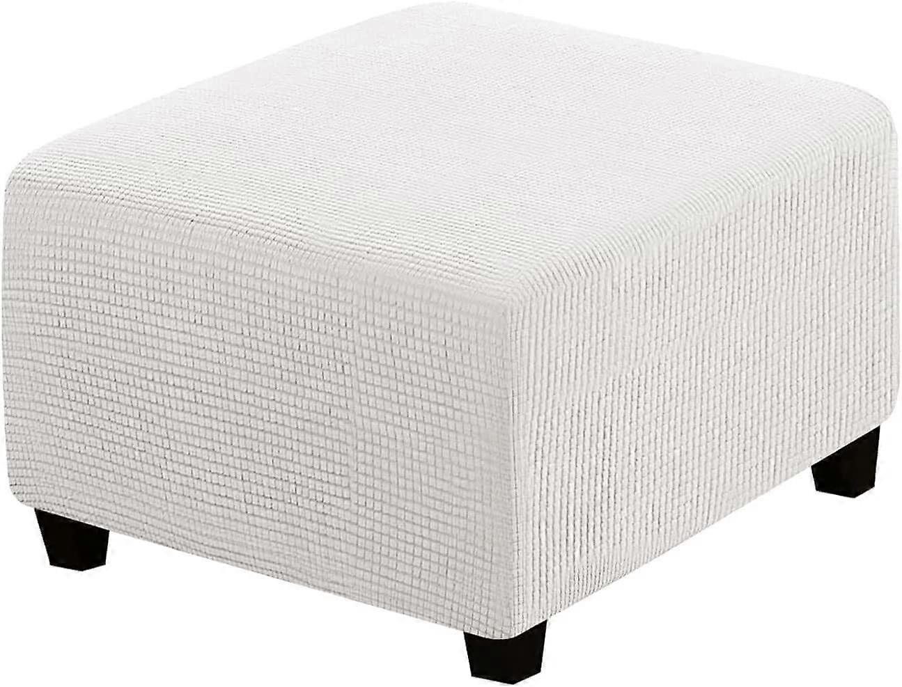 Stretch Footstool Cover Square Footstool Slipcover, Thick Jacquard Fabric With Elastic Bottom, White, 88-110 CM