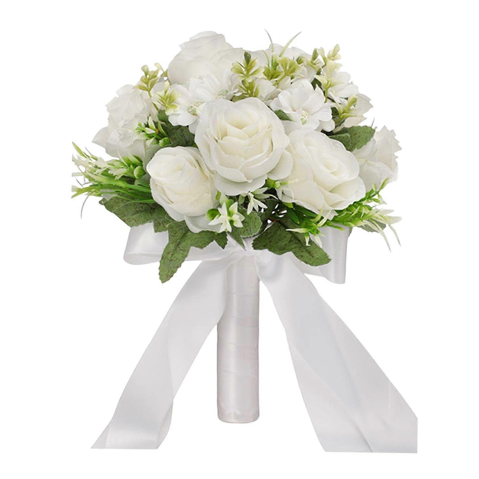 Wedding Bridal Bouquet Multi Color Artificial Flowers Hand Flower Vintage Style Toss Bouquet White