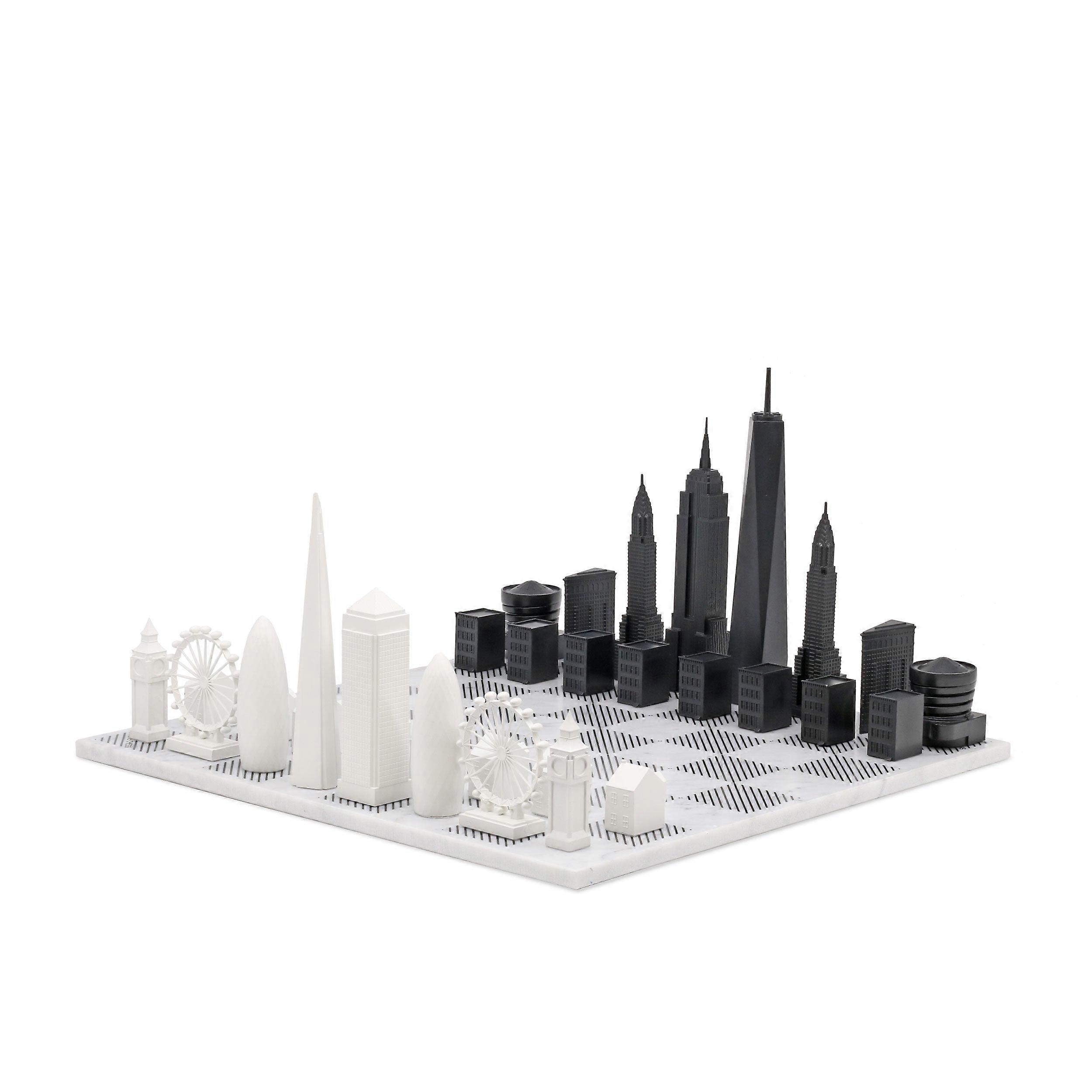 Skyline Chess Vs New York Edition Acrylic Pieces Marble Board Grey White Contemporary Chess