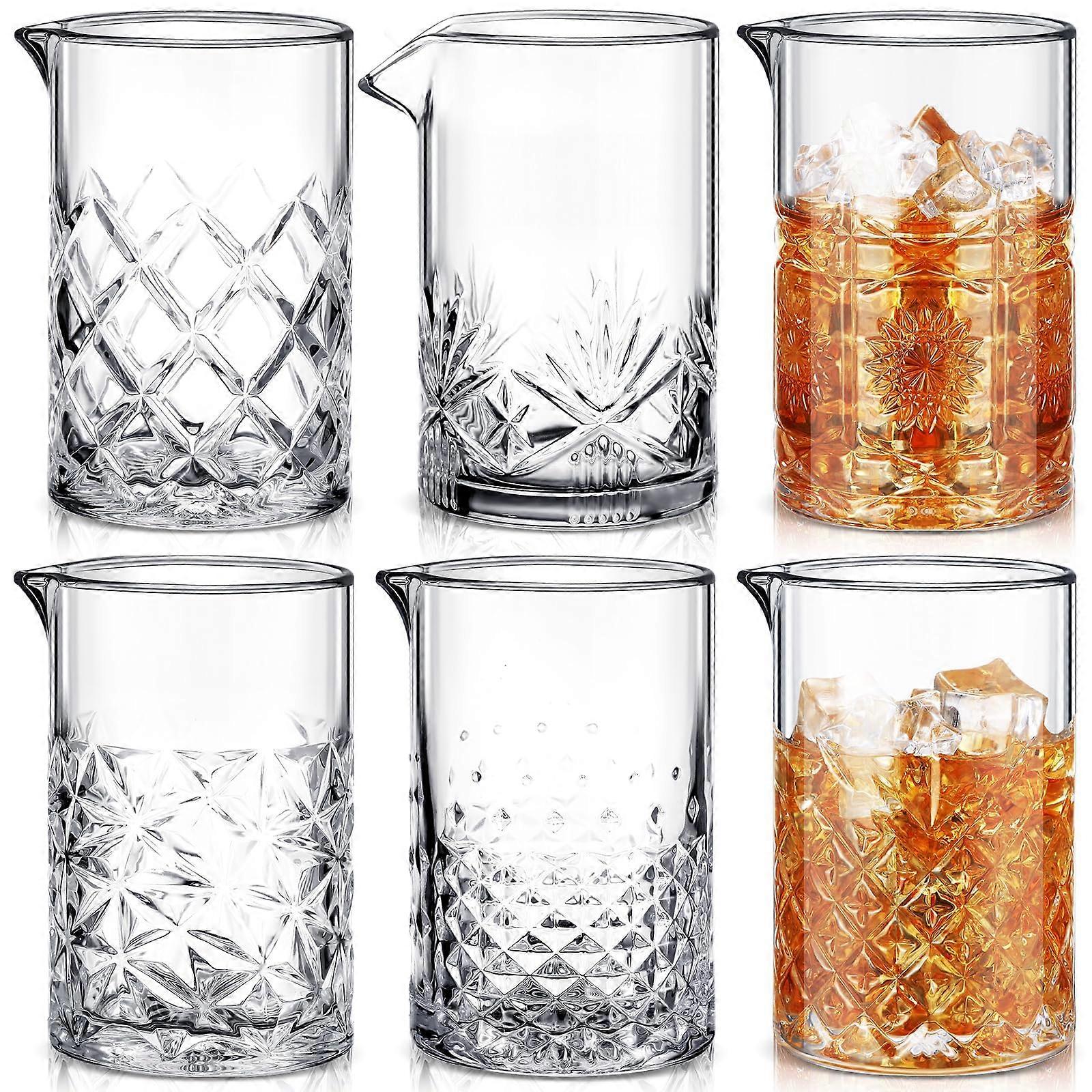 Cocktail Stirring Glass 24 Oz Crystal Thick Base Seamless Interior Home Bar Accessory 6 Styles