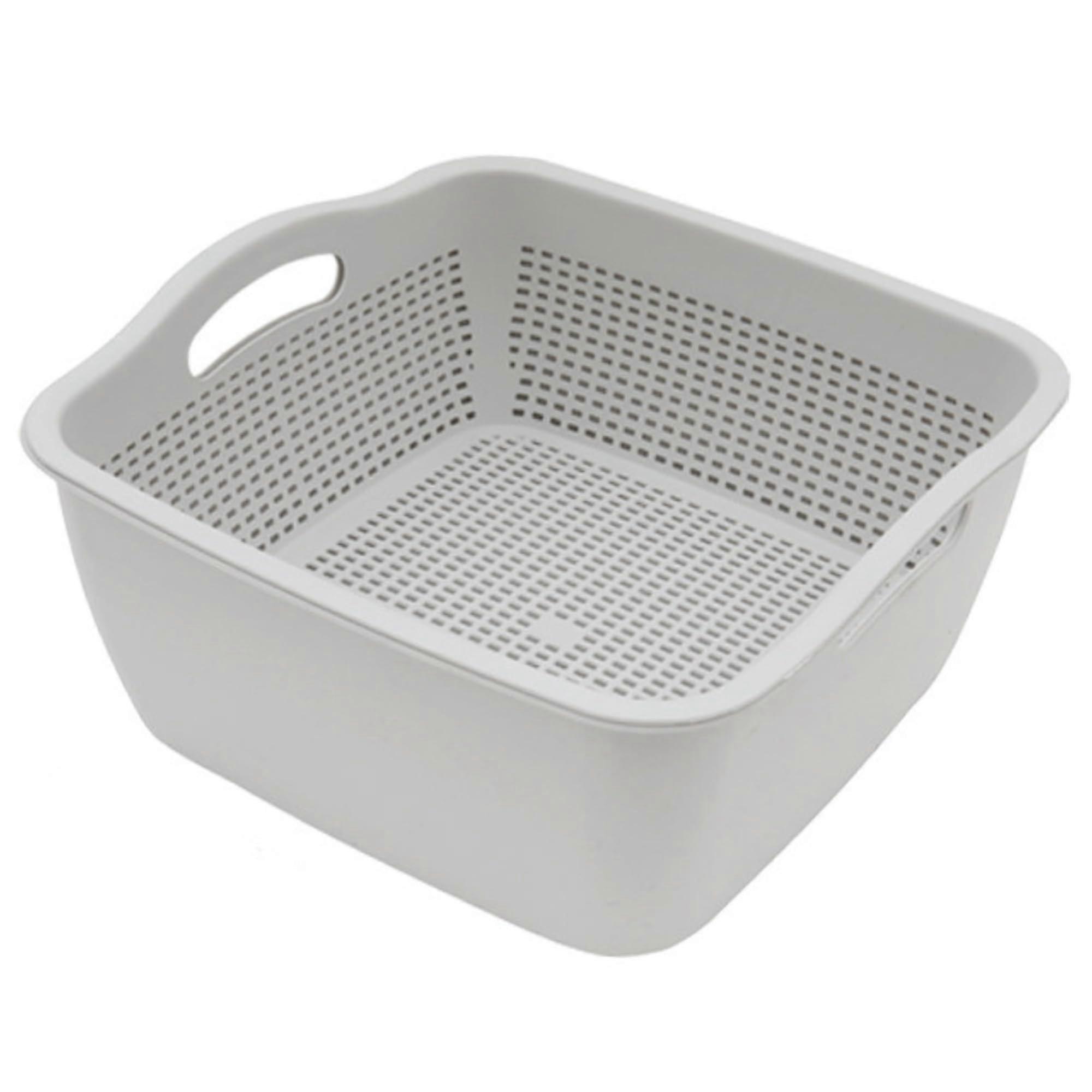 Kitchen Strainer 2-In-1 Drain Basin and Plastic Colander Bowl Gray Large