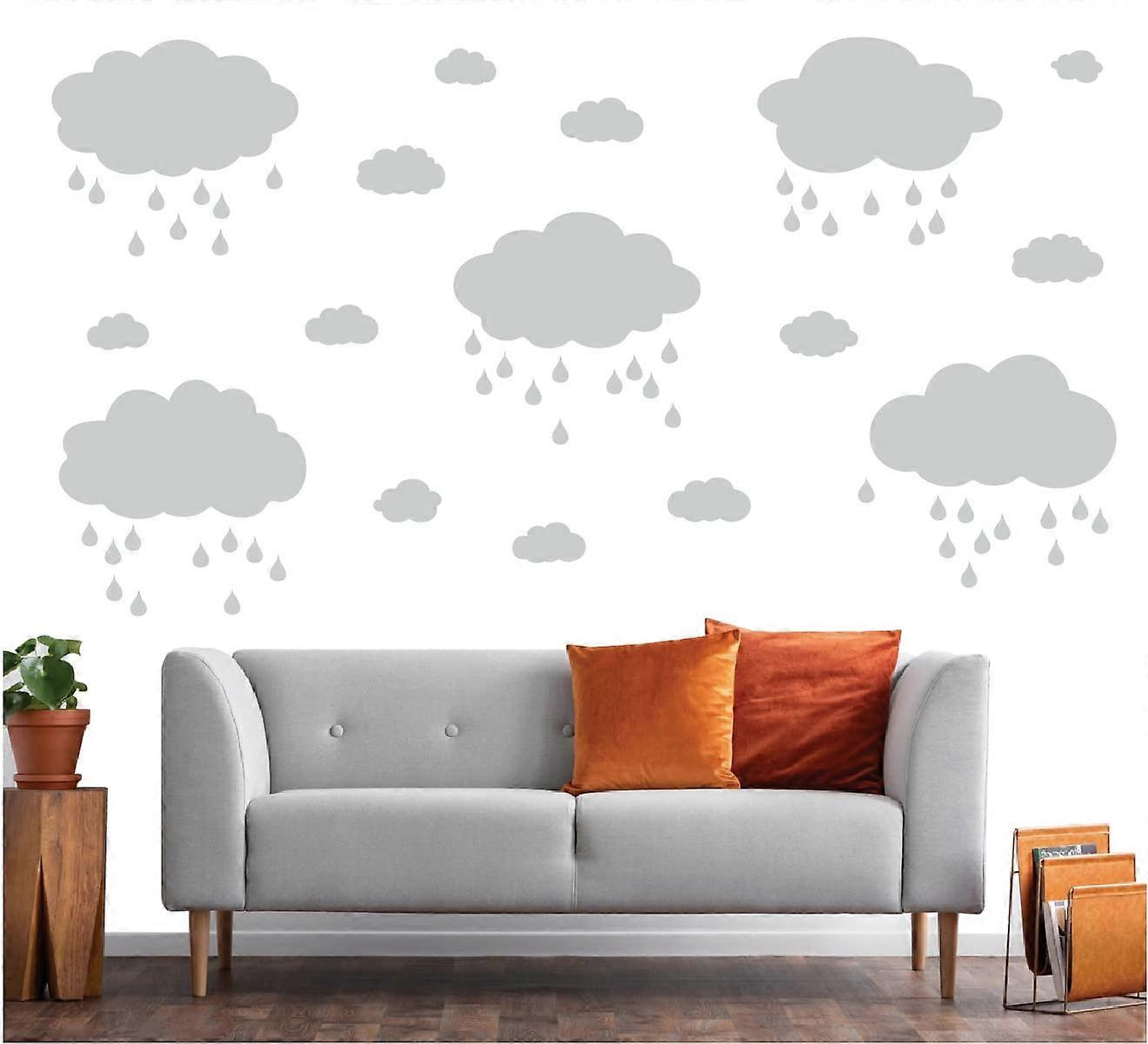 Large White Clouds And Rain Drops Wall Decals JW584 Light Gray For Children's Room And Baby Room