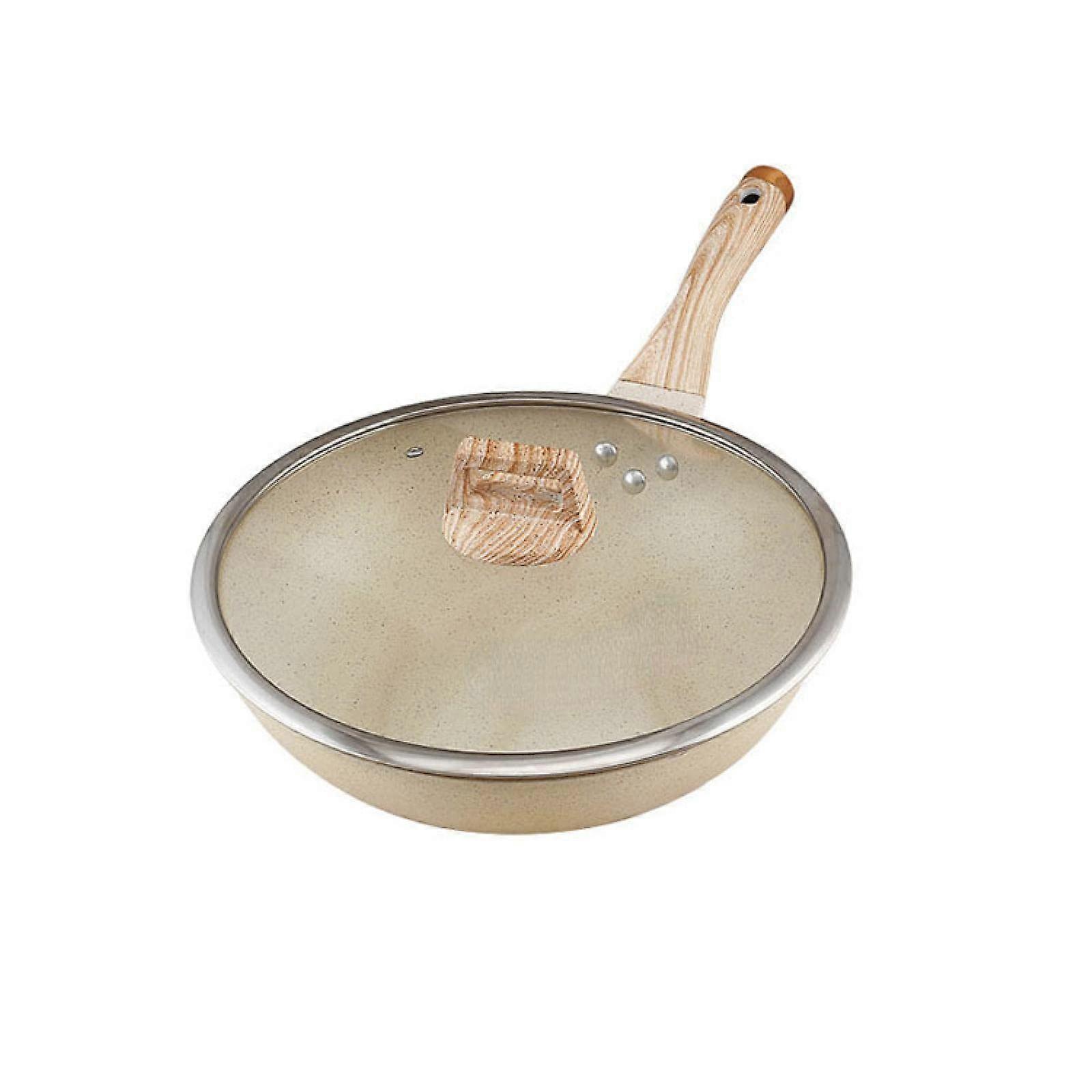 Wok Volcanic Rock Maifan Stone Nonstick Wok, Ceramic White, 34cm, Small Household Pan, Uncoated