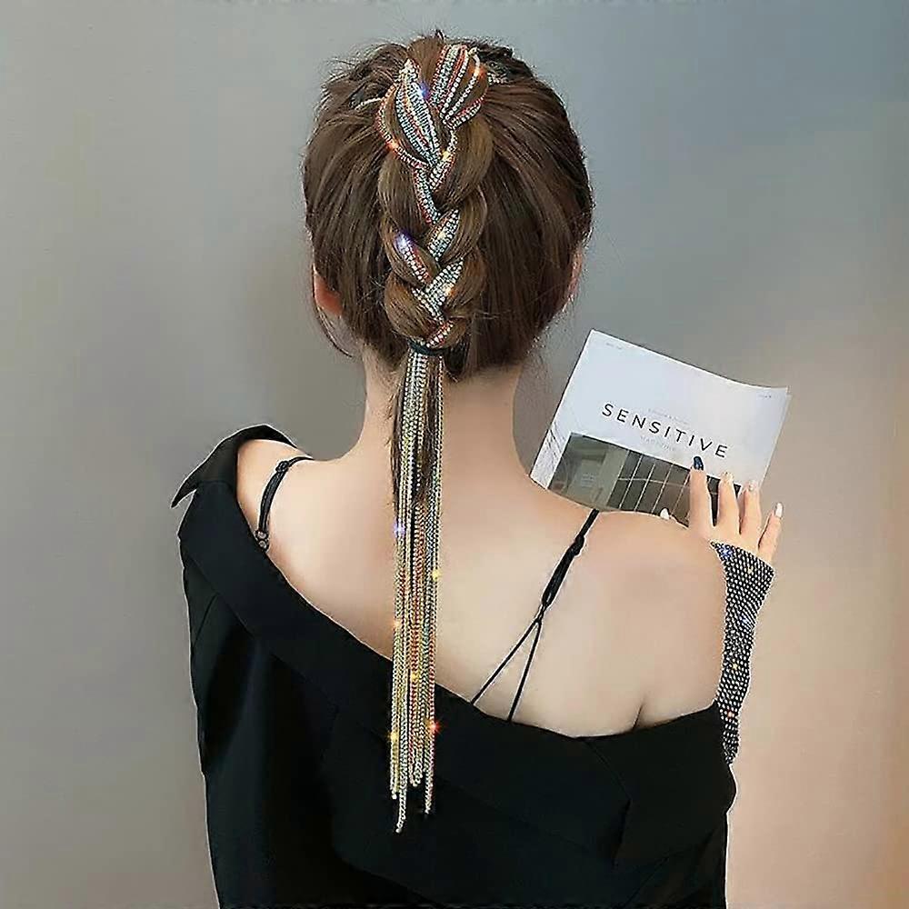 2pcs Rhinestone Head Chain Hair Clips Luxury Bridal Headdress with Long Tassel Ornaments for Wedding Style