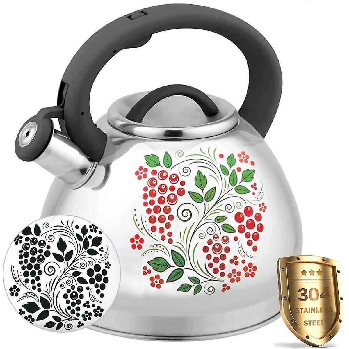 Tea Kettle for Stovetop Whistling Teakettle - 3L Food Grade 304 Stainless Steel Espresso Tea Pot with Ergonomic Handle