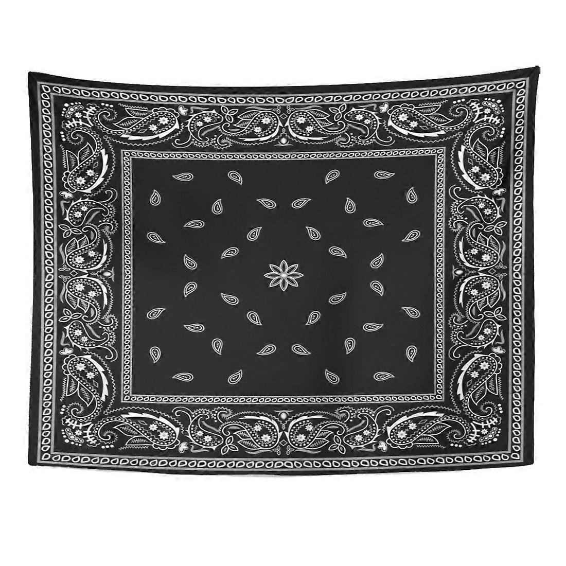 Colored Paisley Black Pattern Bandana Border Scarf 60x80 Inches White Wall Decor Hanging For Living Room