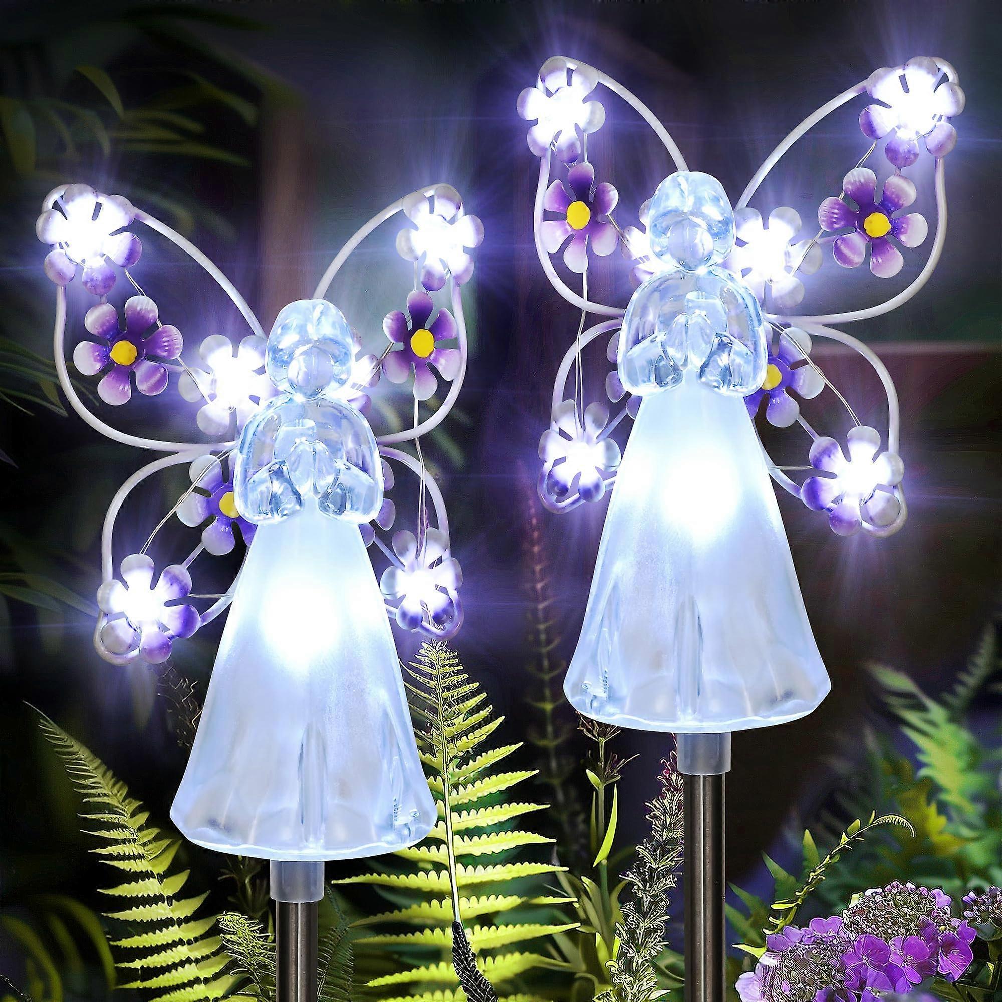 Solar Angel Garden Stake Lights 2 Pack Outdoor LED Angel Decor Lights for Garden Pathway, Waterproof Solar Powered