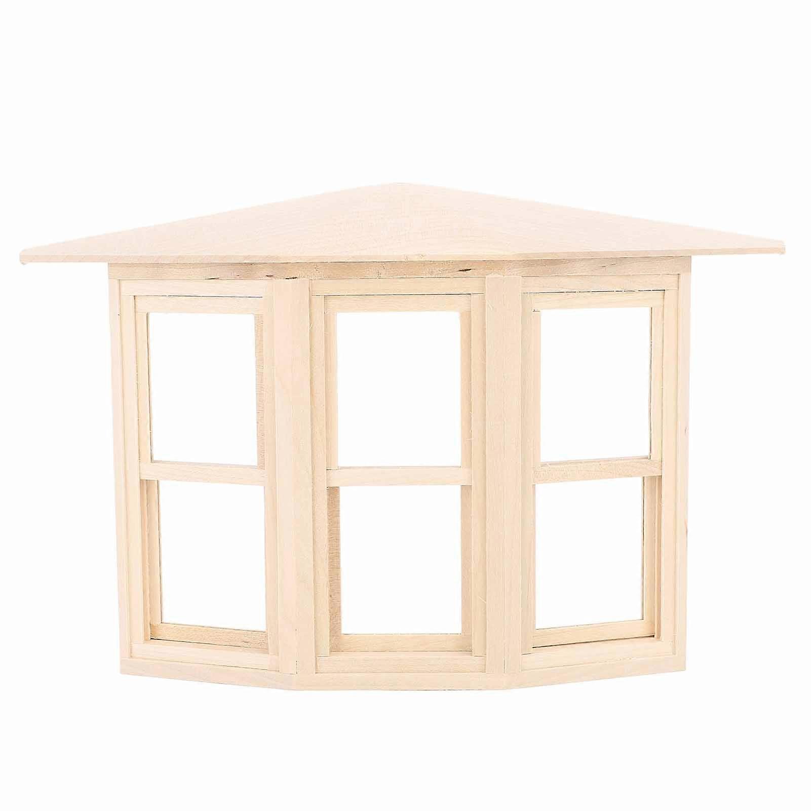 1:12 Dollhouse Birch Wood Exquisite Lifelike Miniature 45 Degree Three Sided Sliding Bay Window Model for DIY Asseccories