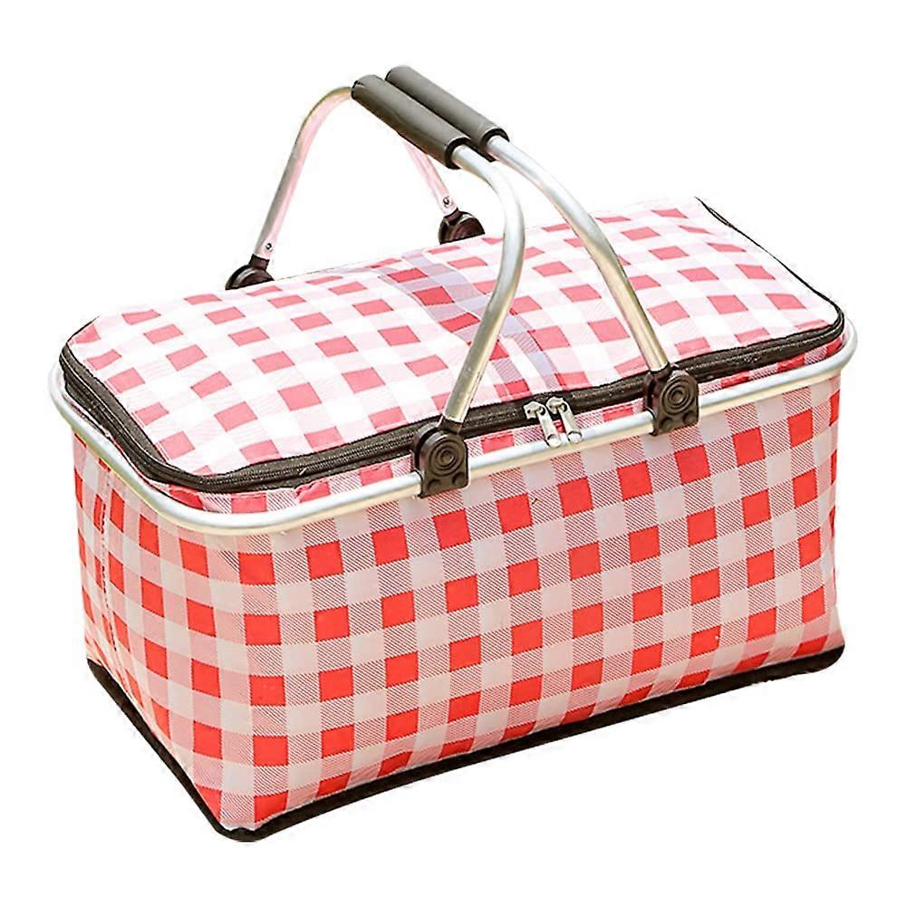 28L Insulated Picnic Basket Portable Collapsible Grocery Bag Leakproof Cooler with Aluminium Handle for Travel and Camping Red