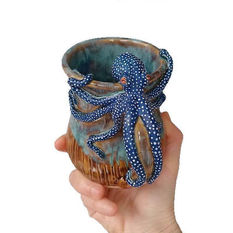 Handmade Octopus Mug Ceramic Coffee Mug With 3D Octopus Tentacle Beard Handle 11 Oz Marine Life Gift