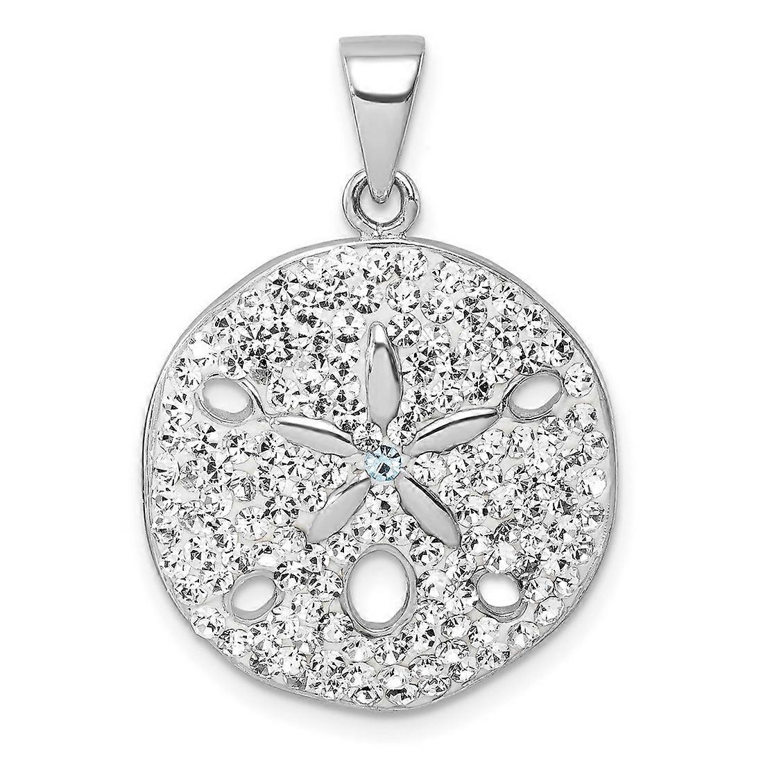 21mm 925 Sterling Silver Rhodium Plated Polished Crystal Sand Dollar Pendant Necklace Pendant for Women