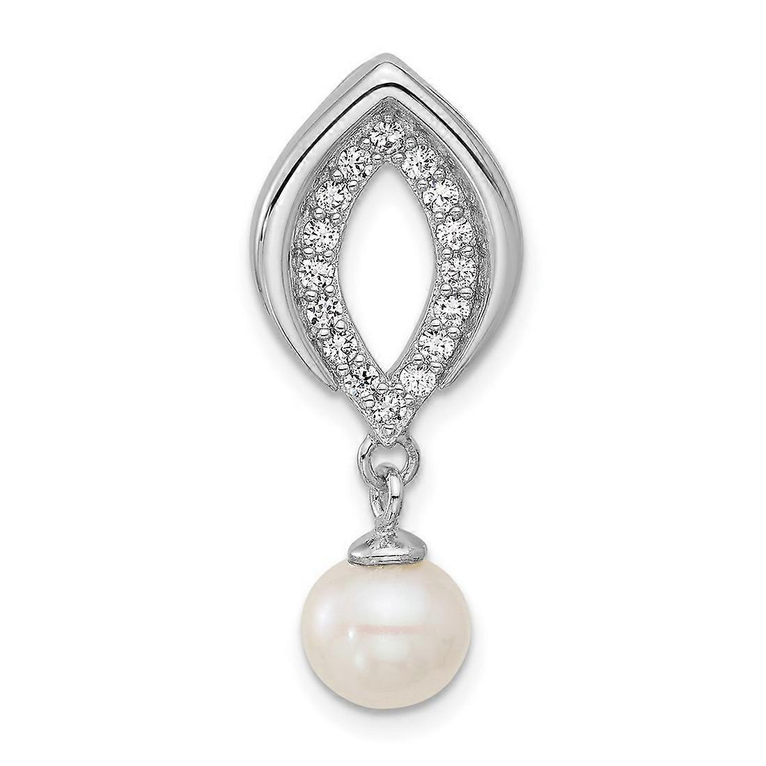 11.5mm 925 Sterling Silver Rhodium Plated Cubic Zirconia Freshwater Cultured Pearl Dangle Pendant Necklace Pendant for W