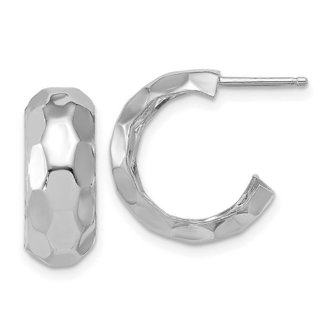 925 Sterling Silver Rhodium Plat Polish Textured Post J hoop Earrings 16.95x16mm Wide 6.75mm Thick Hoop Earring for Wome