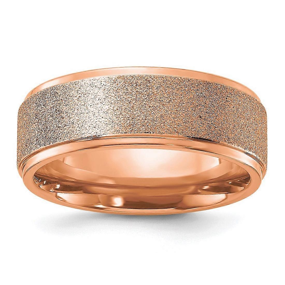 Titanium Polished Laser-cut Center Rose Ip Plated 8mm Band Ring for Women and Men - Ring Size: 8 to 13