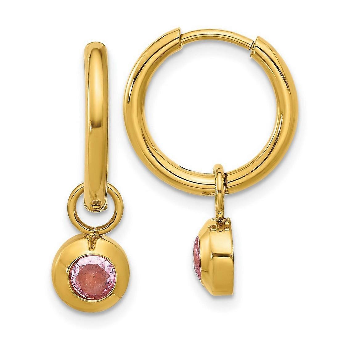 7mm Stainless Steel Polished Yellow Ip Pink Cubic Zirconia Dangle Hinged Hoop Earrings 24x7mm Wide 2mm Thick Hoop Earrin