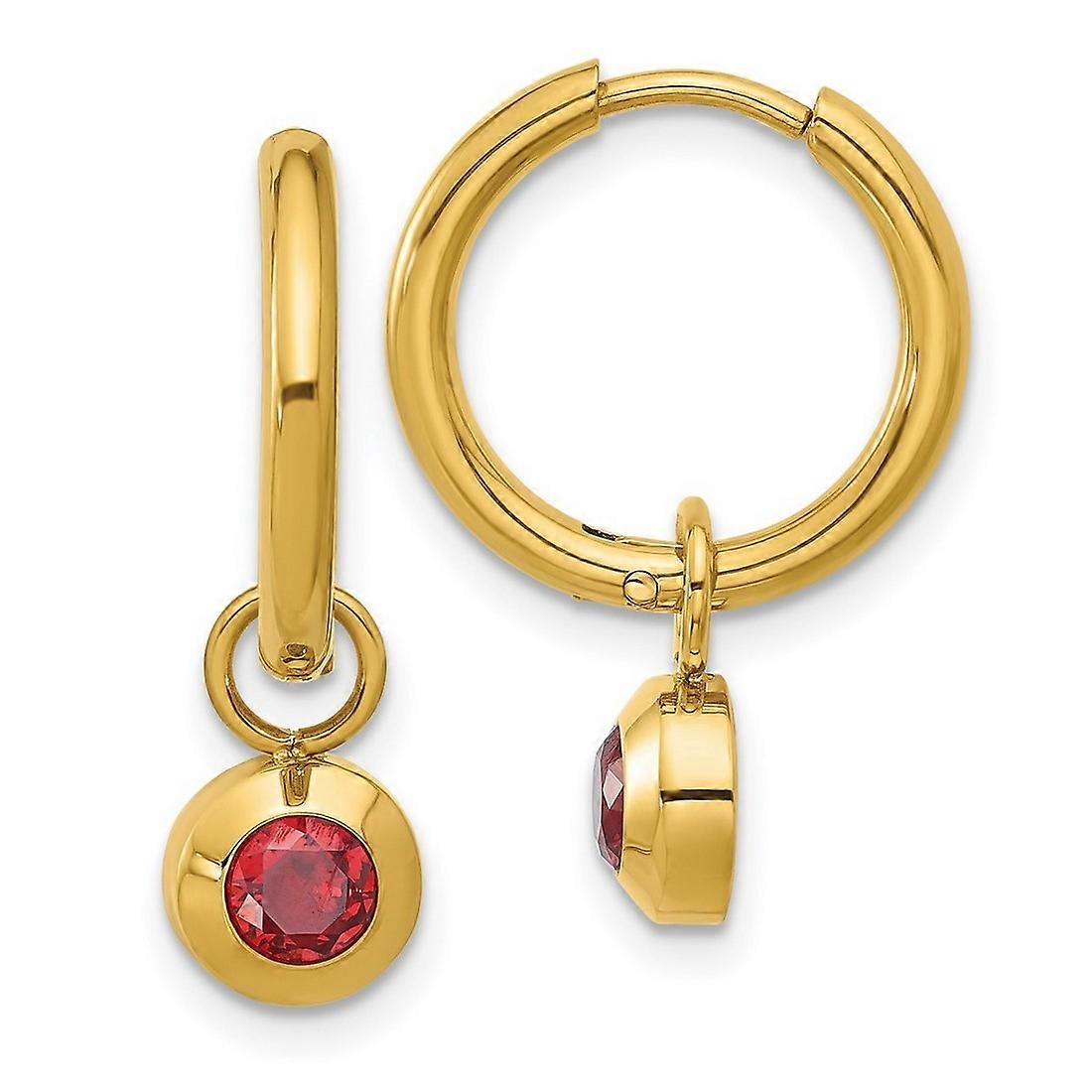 7mm Stainless Steel Polished Yellow Ip Red Cubic Zirconia Dangle Hinged Hoop Earrings 24x7mm Wide 2mm Thick Hoop Earring