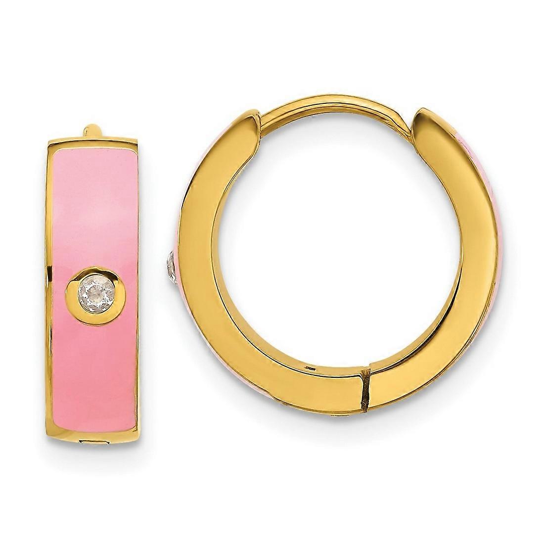 Stainless Steel Polished Yellow Ip Pink Enamel With Cubic Zirconia 5mm Hoop Earrings 15x5mm Wide 2.5mm Thick Hoop Earrin