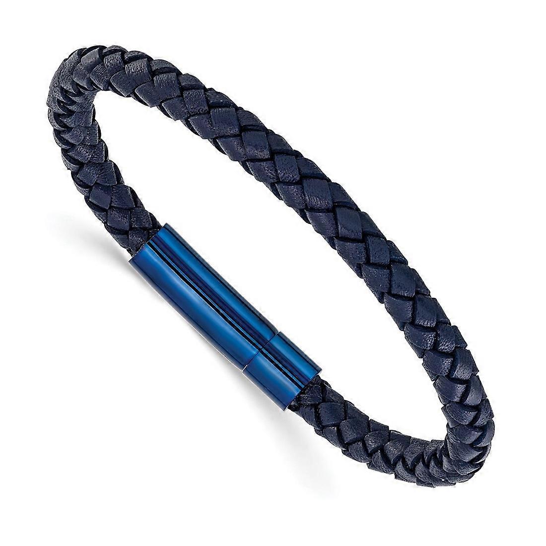 6mm Stainless Steel Polished Blue Ip Plated Navy Leather Bracelet 8.25 Inch Link Bracelet for Women