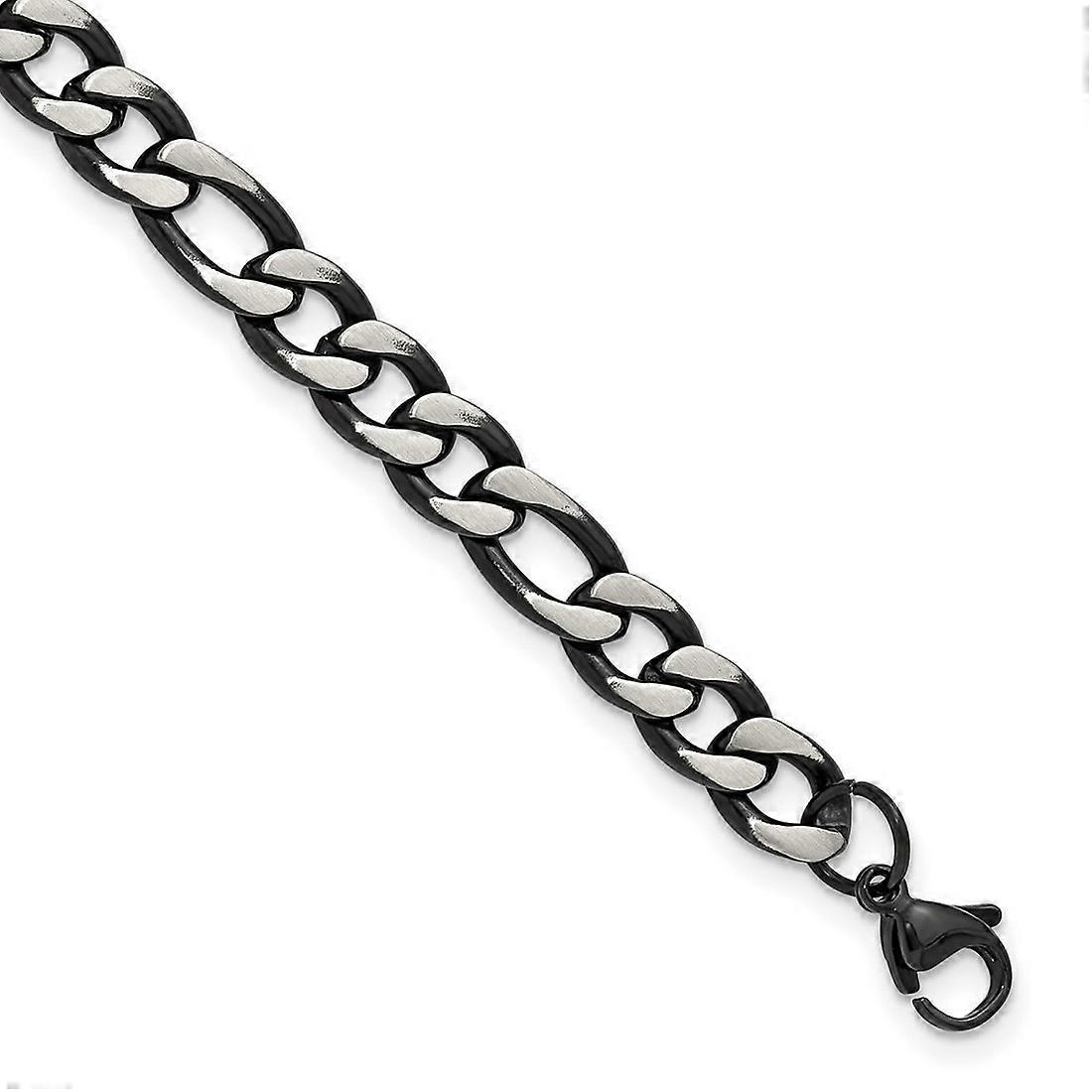 Stainless Steel Brushed Polished Black Ip 7.5mm Figaro Link Bracelet - 9 Inch - 17.0 Grams In Solid Stainless Steel - - Width of Item: 7.5 mm - Length of Item: 9 in - Chain Length: 9 in - Chain Width: 7.5 mm - Clasp /Connector: Lobster (Fancy) - Finish: Polished & Brushed - Chain Type: Figaro - Clasp Width (Male end): 8.4 mm - Clasp Width (Female end): 7.8 mm -