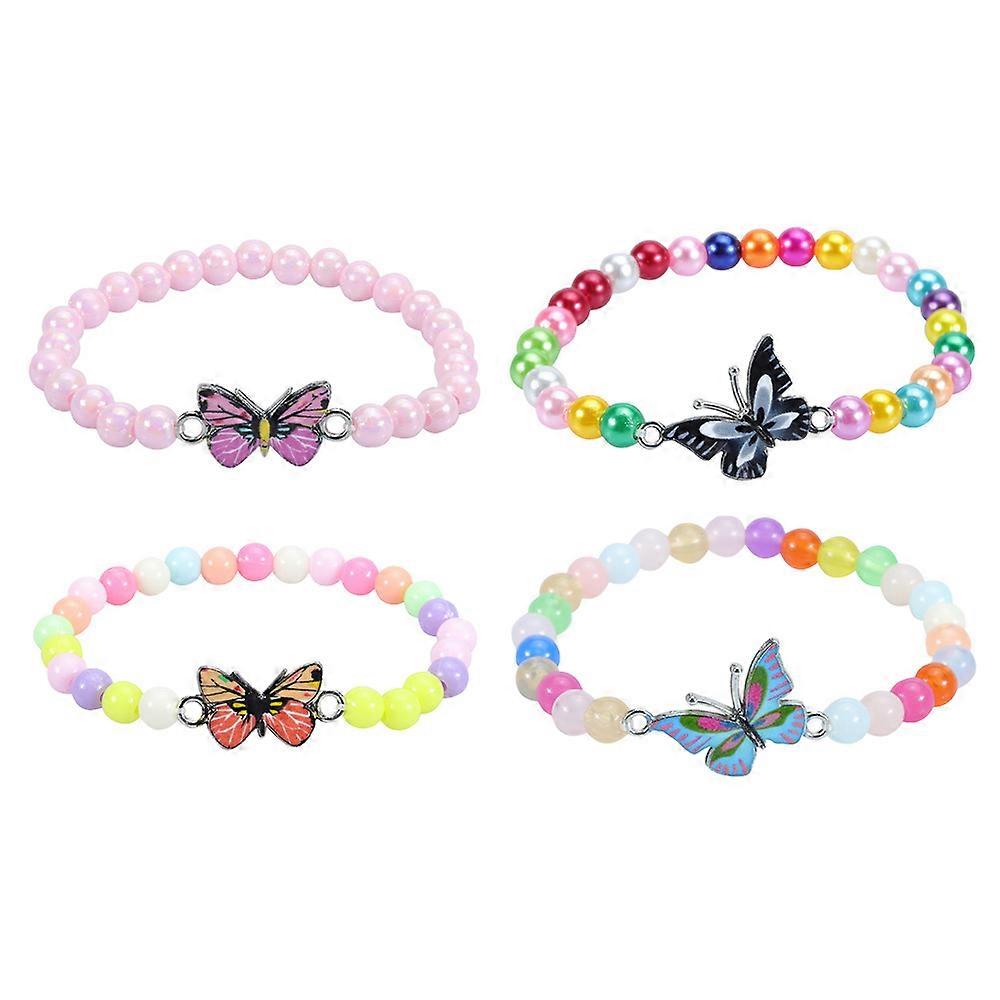 4 Pieces Princess Bracelets, Rainbow Stretchy Bead Bracelets Butterfly Bracelet,Girls Costume Jewelry Set-Style 1