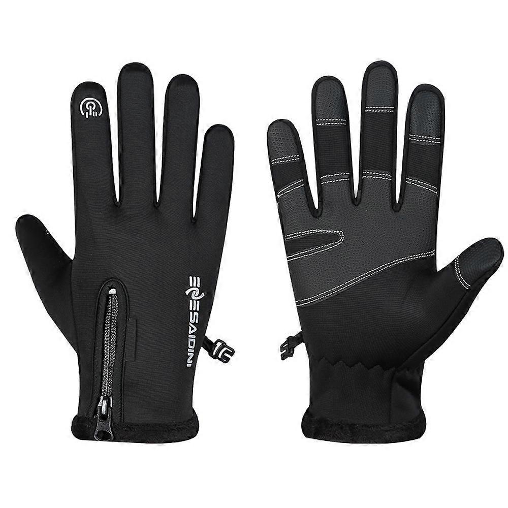 Touch Screen Zipper Waterproof Cycling Outdoor Training Anti-Skid Sports Gloves(Black)-L