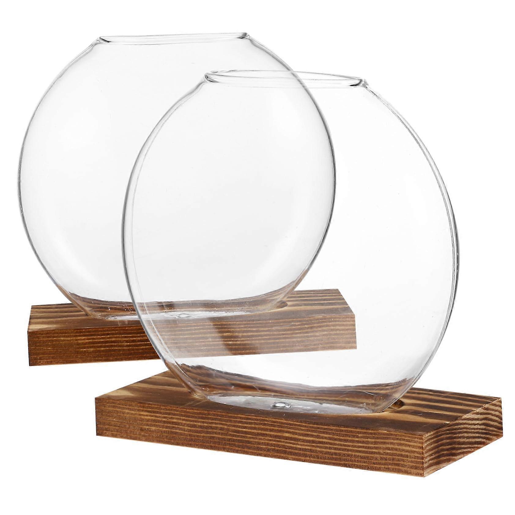 Clear Glass Terrarium Vases Set of 2 Small Hydroponic Plant Holders for Home Decor Floral Arrangements