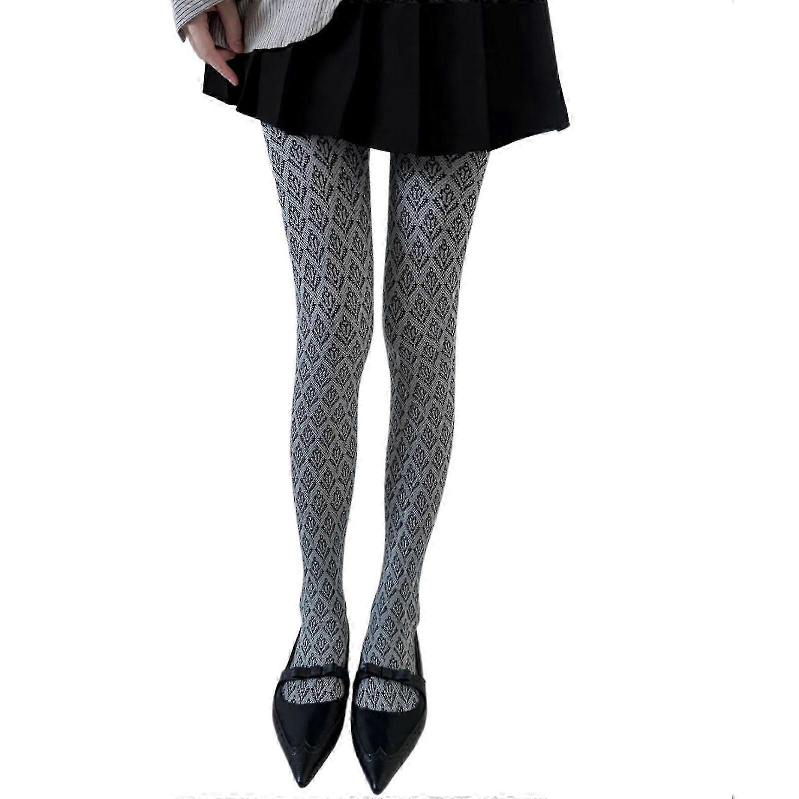 Vintage Dark Floral Jacquard Pantyhose - Japanese Style Autumn Opaque Silky Slimming Tights - Bottoming Stockings - royal blue