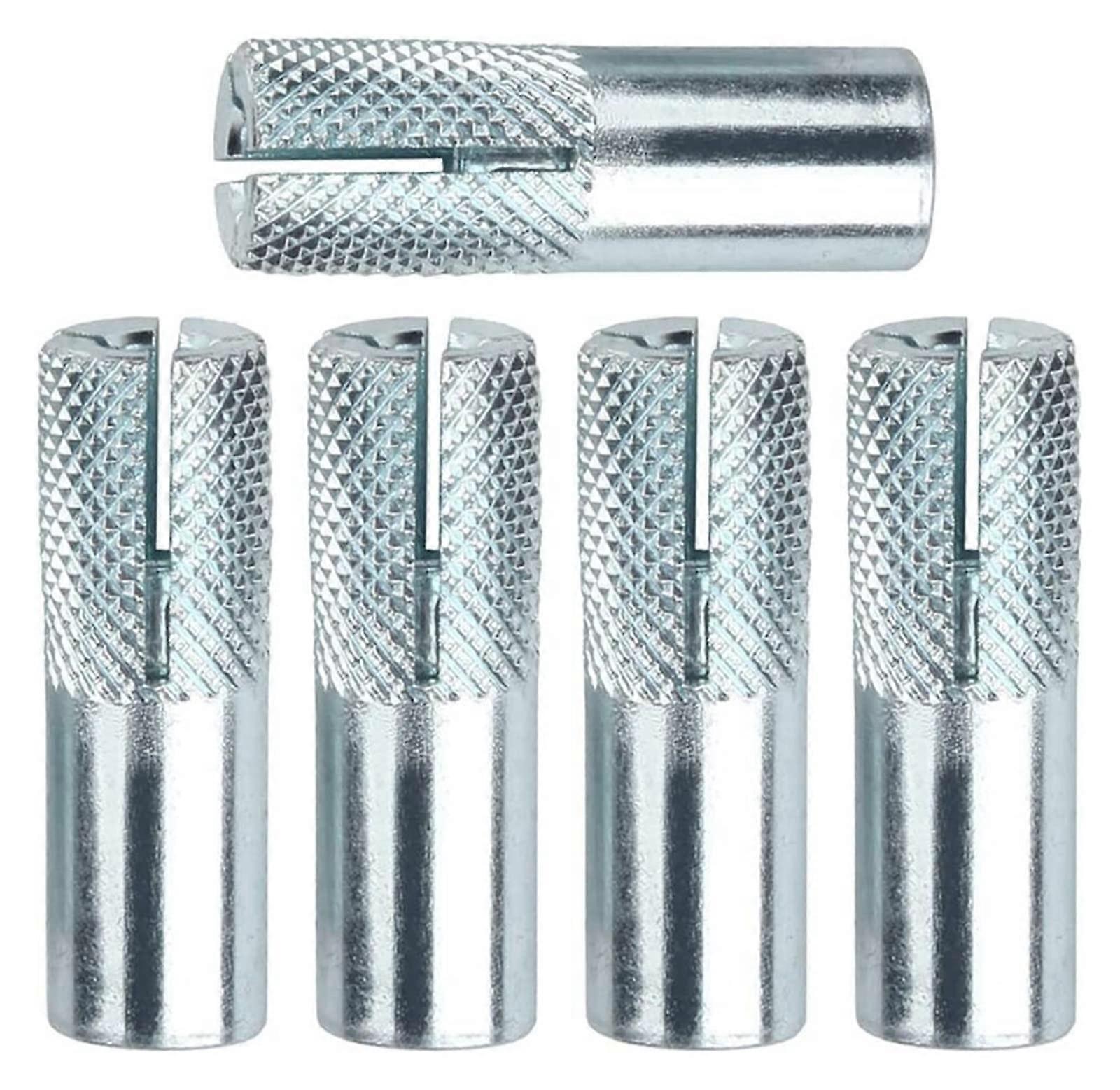 Package includes: 20 pieces. Material: high quality carbon steel for durability and load performance. Installation: drill the hole to the correct size, tap the screw into the hole, then tighten. How it works: as the bolt tightens, it draws a tapered cone, expanding a sleeve against the walls of the drilled hole to form a secure anchor. Benefits: strong, reliable hold; simple installation with standard tools; long service life in permanent mounting projects. Applications: - Mount brackets, shelves, cabinets, or fixtures to concrete or masonry substrates. - Secure equipment, machinery, or other hardware to floors or walls in workshops and construction environments. - Install handrails, post bases, or base plates where a robust anchor is required.