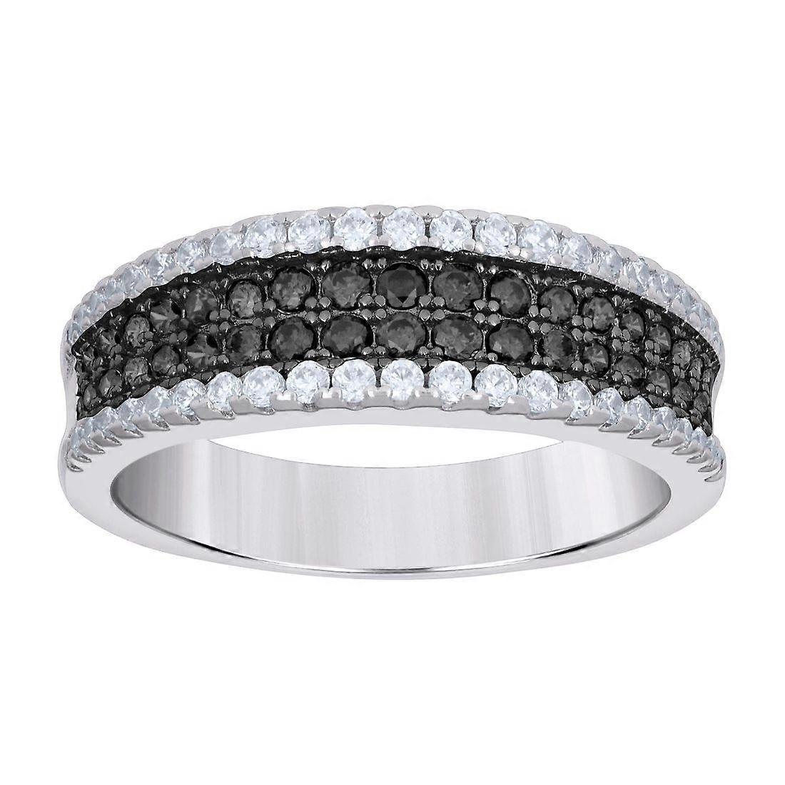 925 Sterling Silver Black-tone Womens Black White Cubic Zirconia Fashion Band Ring 7.6mm Long Ring for Women and Men - R