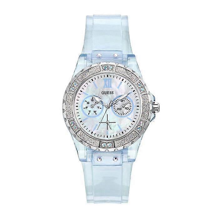 Discover the GUESS GW0041L3 watch for women, with a white plastic strap and a quartz movement. Its round case of 39 mm diameter is water-resistant up to 3 ATM, perfect for everyday use. Analogue display with date, this watch combines chic style and functionality.