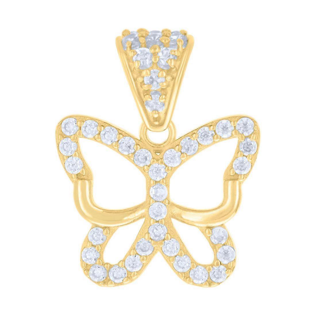 10k Yellow Gold Womens Cubic Zirconia Butterfly Angel Wings Fashion Charm Pendant Necklace 16.9x13.7mm Wide Pendant for