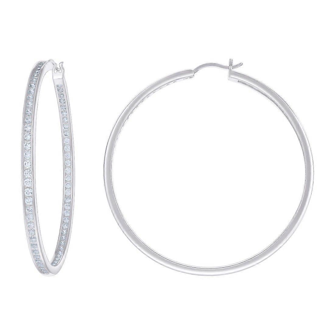 925 Sterling Silver Womens Cubic Zirconia Inside out Hoop Earrings 56x3mm Wide Hoop Earring for Women