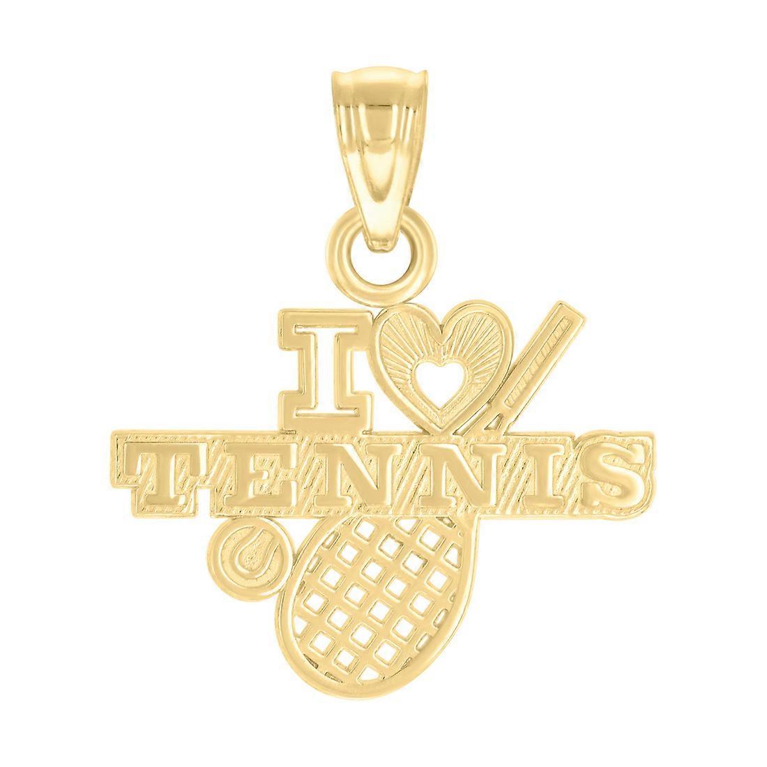 10k Yellow Gold Unisex Heart I Love Tennis Sports Charm Pendant Necklace 18.8x16.3mm Wide Pendant for Women
