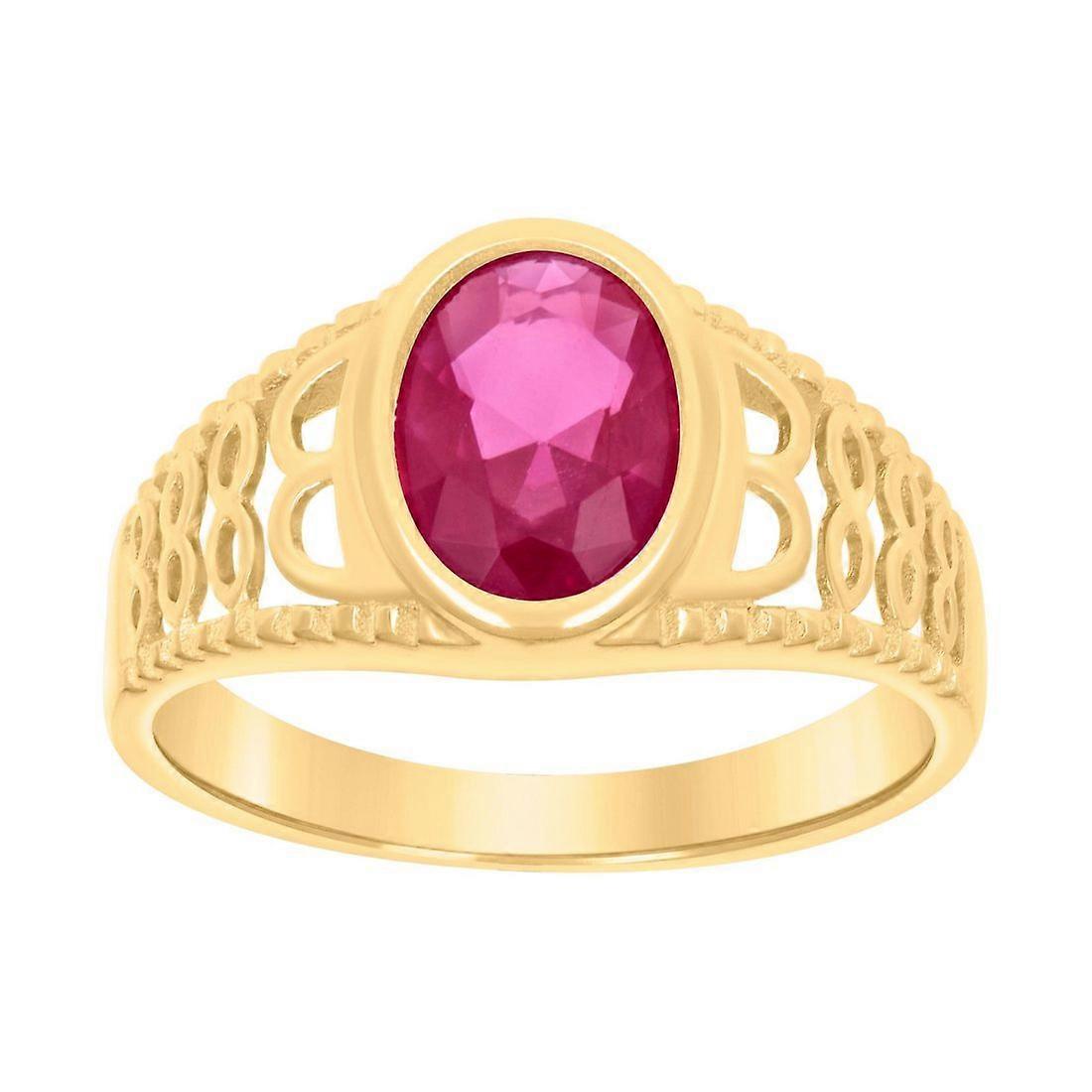 10k Yellow Gold Red Oval Cubic Zirconia Fashion Ring 7.8x7.8mm Wide Ring for Women - 1.2 Grams