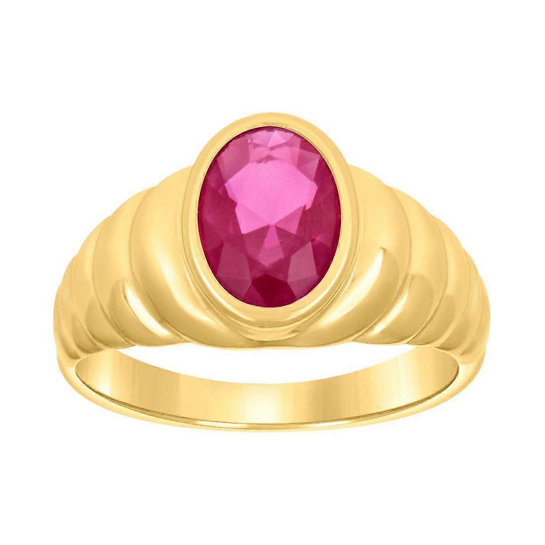 10k Yellow Gold Red Oval Cubic Zirconia Oval Head Fashion Ring 8x8mm Wide Ring for Women - 1.5 Grams
