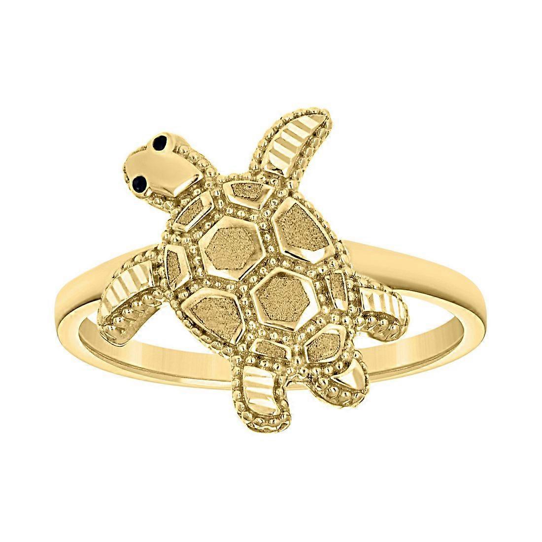 10k Yellow Gold Womens Enameled Turtle Ocean Life Ring 14.8x1.5mm Wide Ring for Women - 2.6 Grams