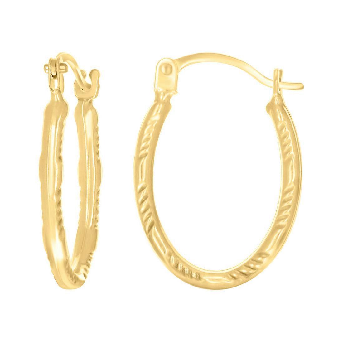 Boucles d'oreilles créoles ovales à motifs en or jaune 14 carats pour femme, 18 x 12,4 mm de large - 0,4 gramme