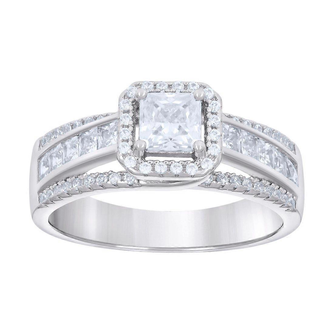 925 Sterling Silver Womens Princess-cut Round Cubic Zirconia Fashion Engagement Ring 8.2mm Wide Engagement Ring for Wome