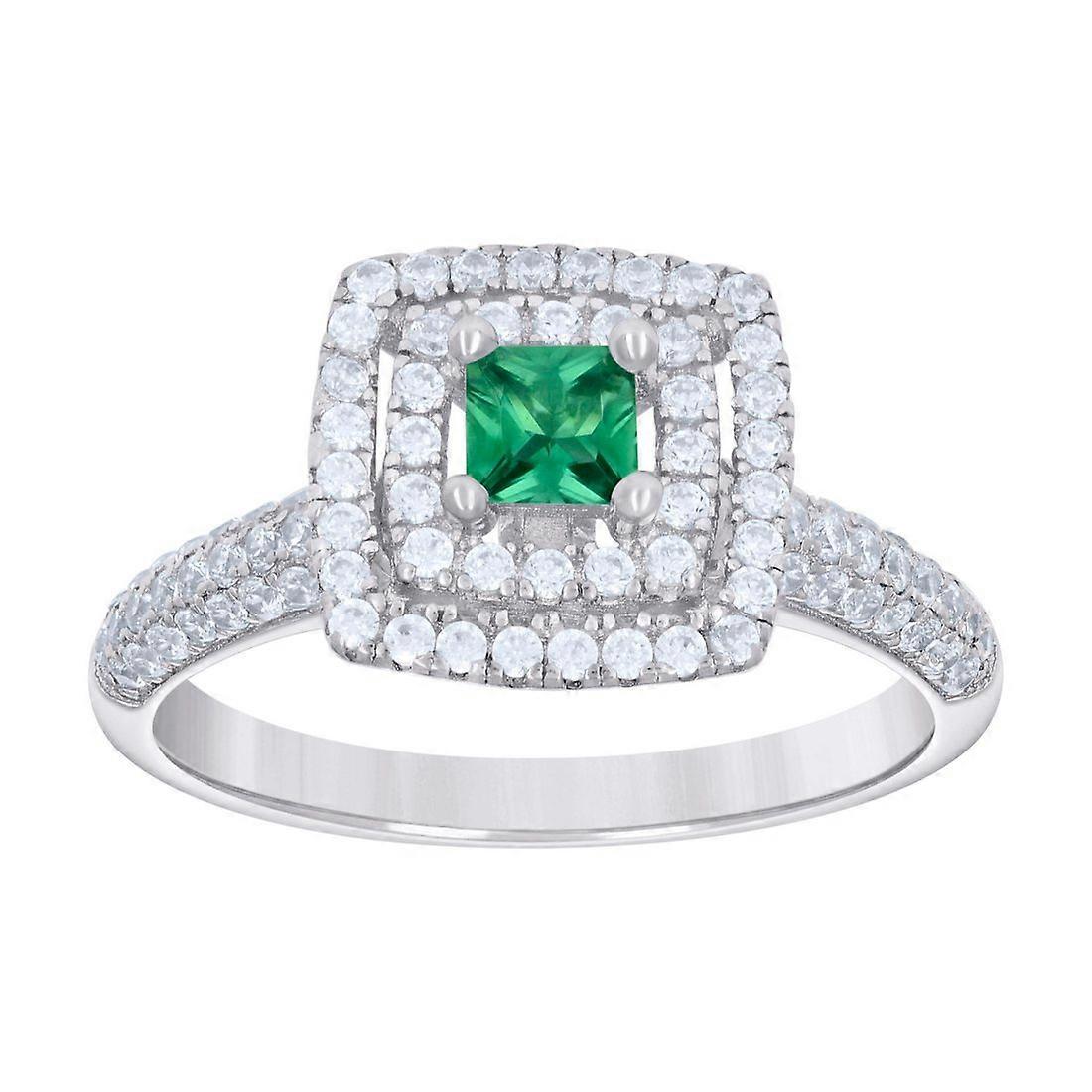 925 Sterling Silver Womens Green White Princess-cut Round Cubic Zirconia Square Fashion Ring 10x2.1mm Wide Ring for Wome