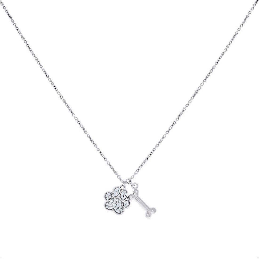 925 Sterling Silver Womens Cubic Zirconia Dog Cat Pet Paw Print and Bone Fashion Charm Necklace Pendant Necklace for Wom