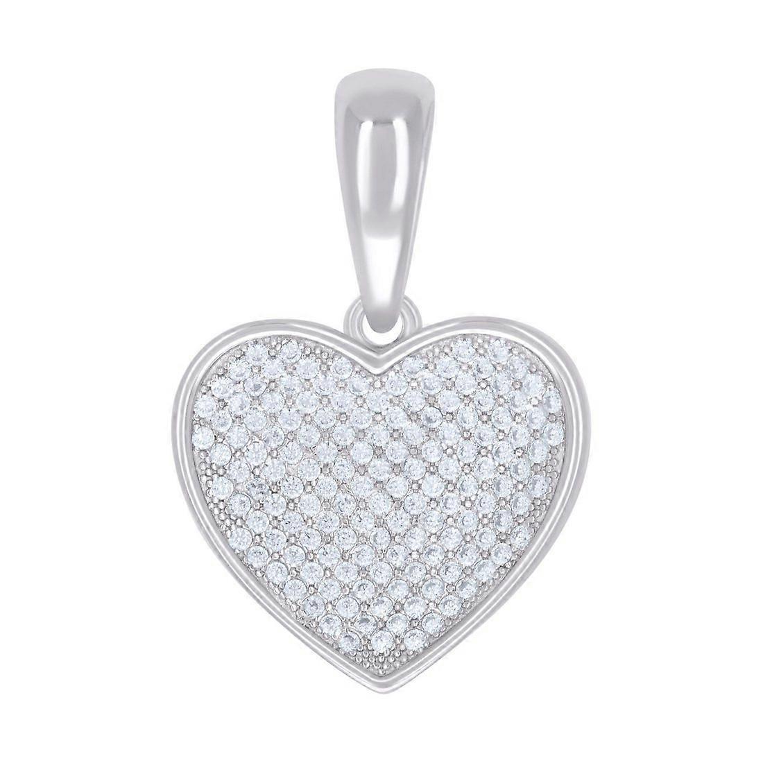 925 Sterling Silver Womens Cubic Zirconia Love Heart Charm Pendant Necklace 27.4x18.3mm Wide Pendant for Women
