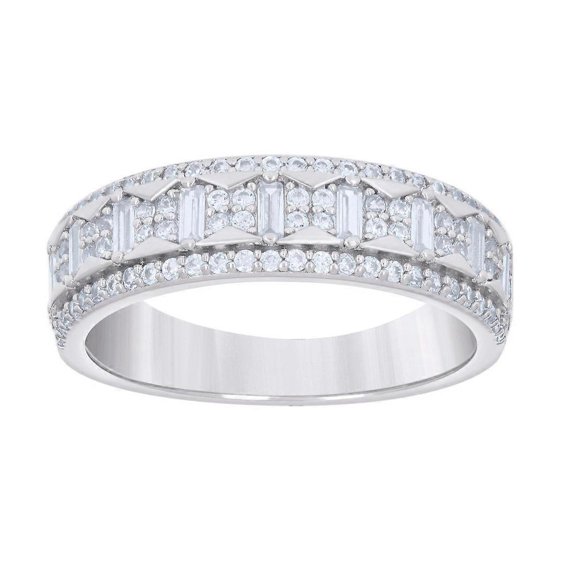 925 Sterling Silver Mens Baguette Round Cubic Zirconia Fashion Wedding Band Ring 6.3x6.3mm Wide Wedding Band for Men - R
