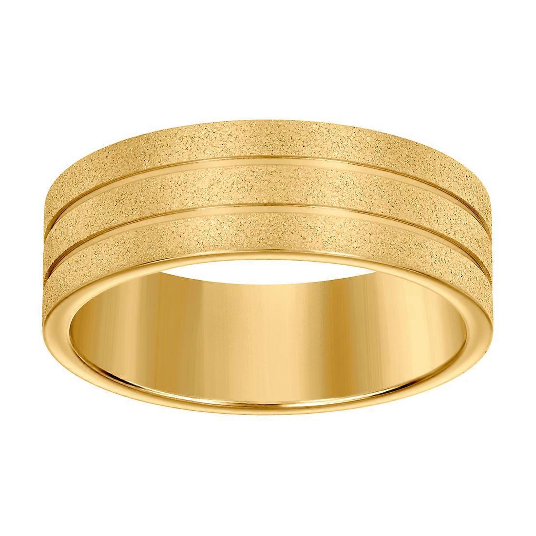 Stainless Steel Yellow-tone Mens Stone Finish Grooved Comfort-fit Wedding Band 8mm - In Solid Stainless Steel in Plated Metal - - Ring Size Options: 10 11 12 9