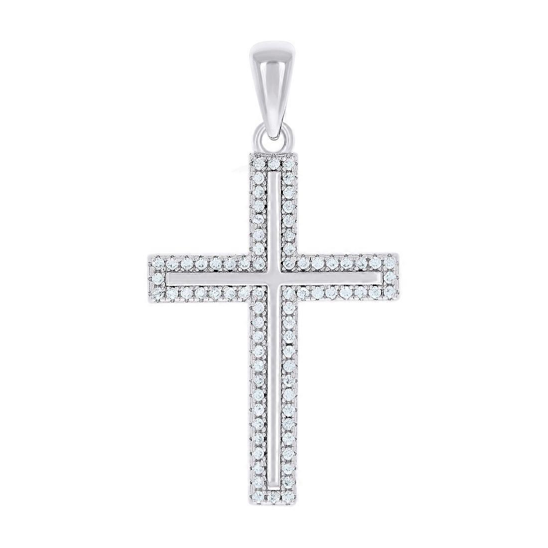 925 Sterling Silver Unisex Cubic Zirconia Cross Religious Charm Pendant Necklace 34.1x18.1mm Wide Pendant for Women