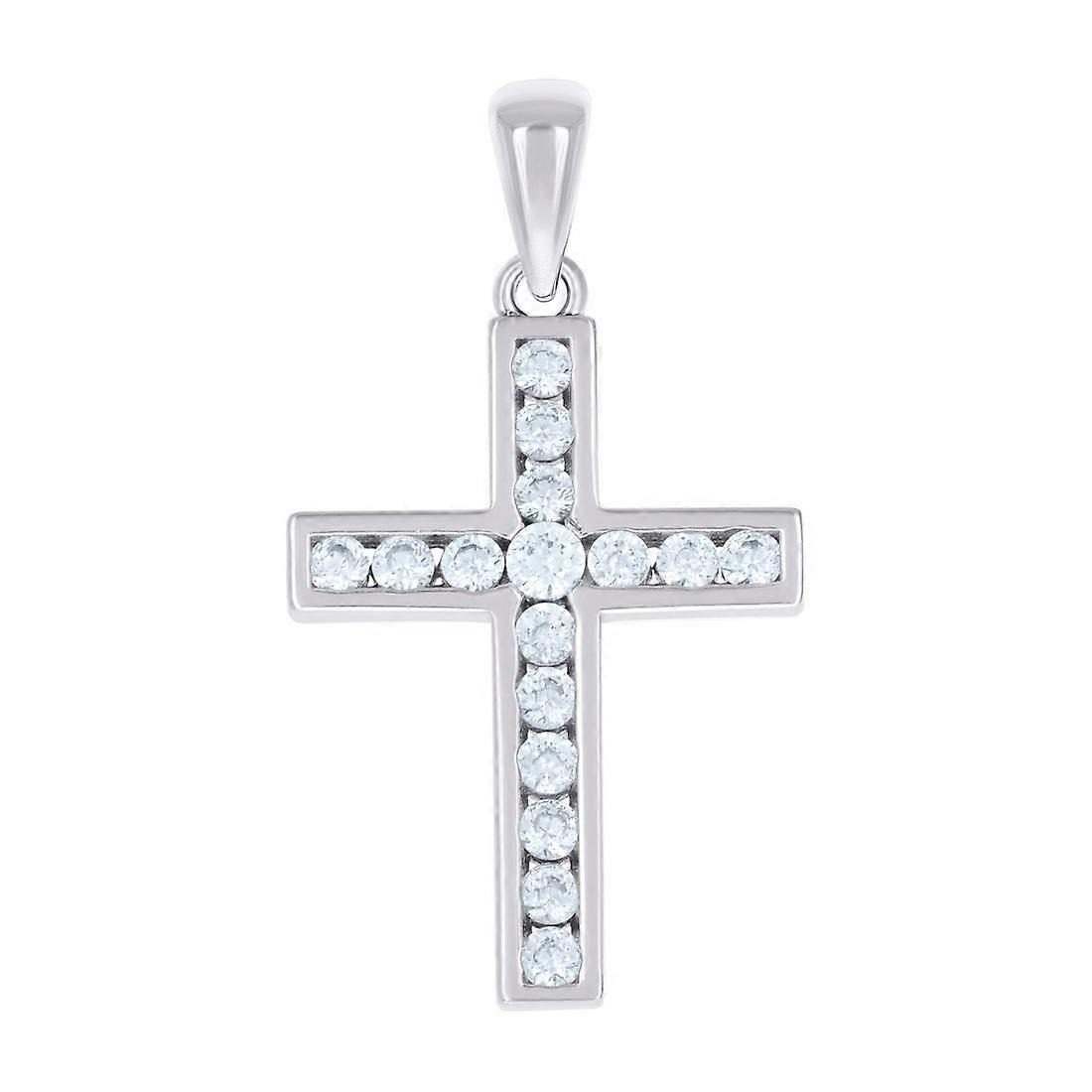 925 Sterling Silver Unisex Cubic Zirconia Cross Religious Charm Pendant Necklace 30.8x16.5mm Wide Pendant for Women