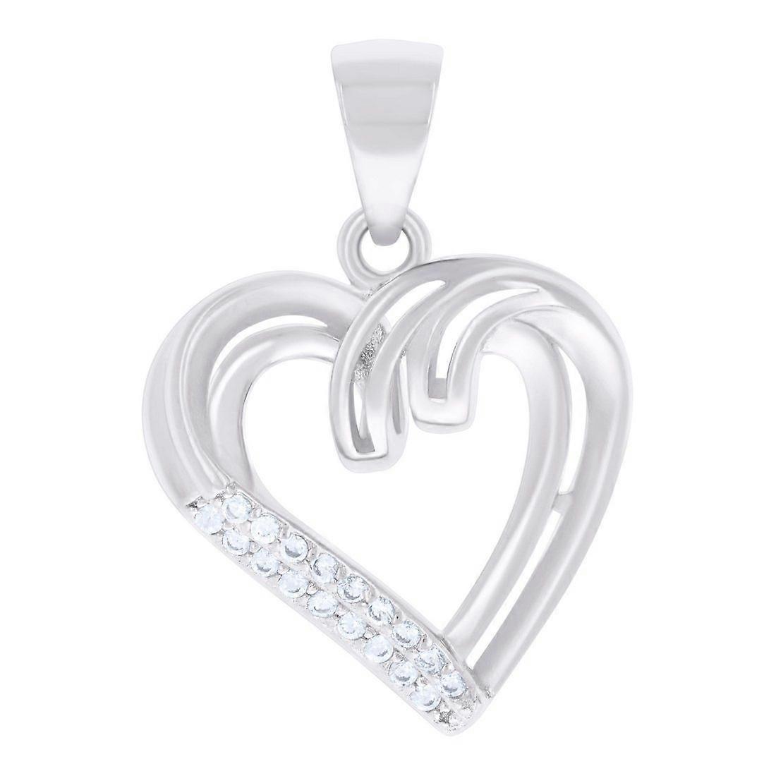 925 Sterling Silver Womens Cubic Zirconia Love Heart Charm Pendant Necklace 24x16.5mm Wide Pendant for Women